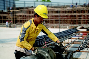 工人正在加工钢筋。
