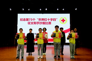 在第72个“世界红十字日”来临之际,学校以“传播红十字精神,弘扬新时代文明新风尚”为主题,发起了“红十字公益宣传大赛”的活动。参赛作品表现形式涵盖了征文、手抄报、诗歌等不同内容,获奖的学生分享了参赛过程的感受和创作背后的故事。颁奖结束后,红十字会梁主任做“红十字知识进校园”暨急救知识培训、“红十字知识进校园”暨防溺水知识培训。
