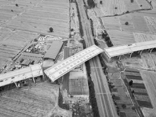 在千斤顶的拉动下,转体梁以每分钟1度的速度缓缓转动,70分钟后,成功和两侧的高速公路对接。由于施工单位提前通过BIM建模技术进行了模拟,这次转体的误差小于5毫米。
