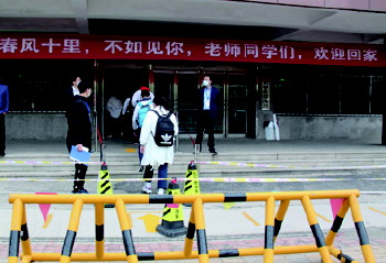 踏上征程 5月8日,威海九中九年级学生迎来“迟到”的开学日。毕业班学子带着对中考必胜的信念,重返校园,开启新学期,踏上新征程。(王晓敏)