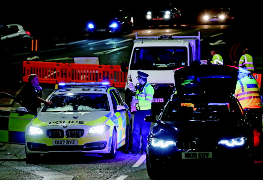 20日晚发生持刀袭击事件的英国雷丁镇一座公园附近道路被封锁。 新华/路透