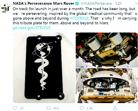向全球抗疫医护人员致敬美火星车将携纪念牌发射