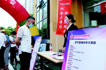 在济宁城投物业服务有限公司展台前,也一直有居民前来咨询。50岁的马树印经过简单咨询后,留下了自己的电话。“我们年纪有些大,自己有过工程维修经验,公司还给缴纳五险一金,待遇也比较优厚,所以登记了信息,希望有机会。”