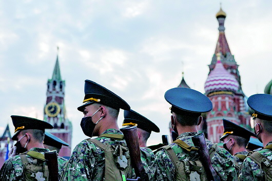 当地时间6月24日,俄罗斯纪念卫国战争胜利75周年红场阅兵式举行。图为俄罗斯士兵接受检阅。