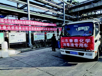 4月19日,在鲁泰控股集团鲁泰化学公司内,一辆满载2吨次氯酸钠溶液(84消毒原液)的货车慢慢驶出,这批消毒液将无偿捐赠给曲阜师范大学,为学校内的设施消毒做好准备工作。这只是疫情防控以来,鲁泰化学无偿捐赠次氯酸钠溶液的一个普通画面。自从新冠肺炎疫情防控以来,鲁泰化学已经无偿捐献了420余吨优质次氯酸钠溶液。