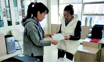 ◤1月12日,失业人员管理科工作人员为企业发放重点企业就业认定证明。