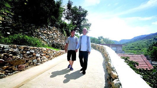 刘丰平陪着父亲走在“幸福路”上。