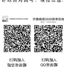 考生及家长可扫描左下方二维码加入齐鲁晚报高考咨询QQ群或微信群,获取最新的高考信息,专家也将在线上进行答疑。
