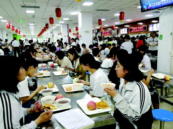 7月5日早餐期间,郓城一中安排鑫辉餐厅为每名高三学子免费赠送爱心苹果一个,寓意鸿运当头、平安顺利。餐厅里,随处可见红彤彤的苹果和孩子们脸上绽放的笑容。