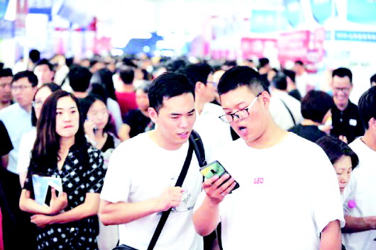 2019年,山东高考招生咨询会上的考生和家长。(资料图)