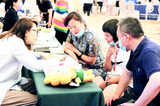 展会现场,家长带着孩子前来咨询。齐鲁晚报·齐鲁壹点记者 王凯摄