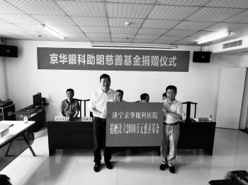 市慈善总会会长贾丽建出席并讲话,市民政局局长、市慈善总会常务副会长岳根才接受京华眼科医院董事长高伟峰捐赠,市慈善总会高级顾问张凤奎为京华眼科医院院长胡维沭颁发了捐赠证书,市慈善总会副秘书长杨东旭与京华眼科医院董事长高伟峰签订了基金捐赠合同。