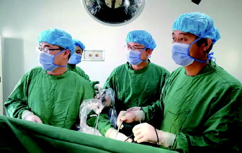赵鹏(右一)与同事为患者实施手术。
