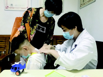医生正为儿童贴敷“三伏贴”。