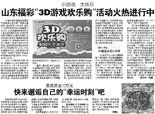 山东福彩“3D游戏欢乐购”活动火热进行中