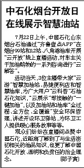 7月22日上午,中国石化山东烟台石油通过“齐鲁壹点APP”在烟台99站和12站、八角港油库开展“云开放”线上直播活动,对车主关于加油购物的一系列咨询进行“云解答”。