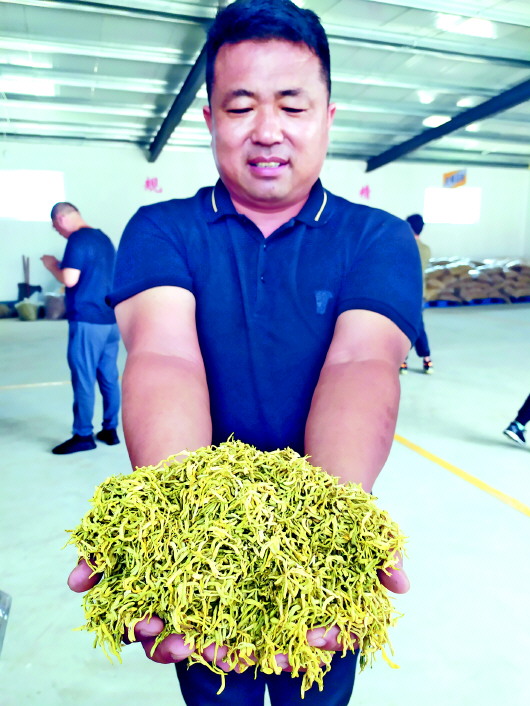 李伟强展示金银花成品。
