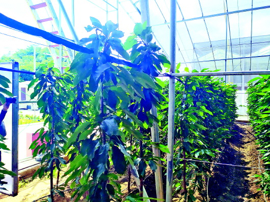 “我们都叫它‘一根杆’,其实它的名字叫密植矮化大樱桃。传统大樱桃种植,一亩地可以种40多棵树,棵与棵间隙大,‘一根杆’占空小,可以种1100棵,株产可达5-10斤,这种树管理起来省时省力,授粉、采摘不用爬上爬下,而且实现了水肥一体。另外,它还是反季节上市,大概在春节前后,能卖个好价钱。”