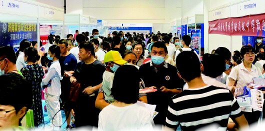 本报济南7月30日讯(记者 巩悦悦 潘世金)30日,由齐鲁晚报·齐鲁壹点举办的第三届济南中考志愿填报融媒咨询会在济南高新国际会展中心举办。展会现场,40余所普通高中、国际高中、中职学校汇聚一堂,为考生和家长指导志愿填报。中招会现场通过直播、视频采访、学生风采展示、图文报道等融媒形式,为考生、家长进行全方位展示,专题报道阅读量过百万。
