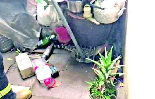 ▲消防人员赶到后,将鳄鱼抓住(视频截图)。
