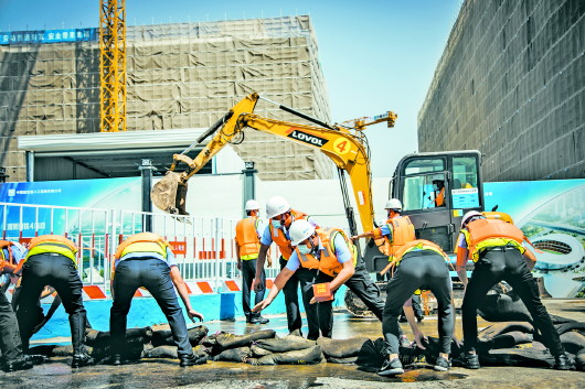 中建八局二公司开展防汛应急救援演练。
