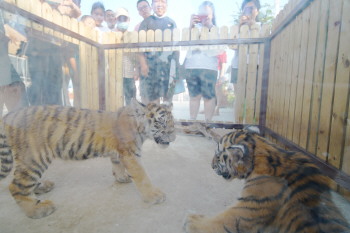 金沙滩啤酒城萌宠王国的小老虎吸引了众多游客。