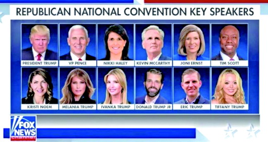 与此同时,与会的关键嘉宾中姓特朗普的倒是随处可见。福克斯新闻网此前制作了一张图,列举了此次大会上的12位重要演讲嘉宾,其中特朗普家族成员竟然占到了6位,这一安排引起美国舆论关注,不少网民在社交媒体上抨击特朗普的这一举动。有人评论称:“这不是共和党全国代表大会,而是特朗普家族的家庭聚会。”也有人抨击道:“共和党没救了,它已经被‘特朗普党’替换了。”