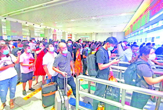 26日,在济南火车站售票大厅,退票的旅客排起了长队。 钱捍 摄
