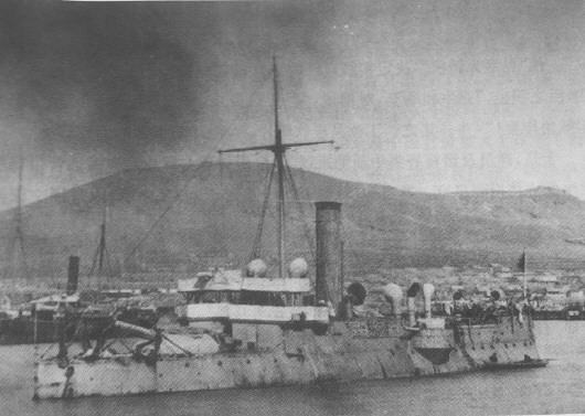 北洋海军覆灭后,停泊在威海湾中的平远舰。