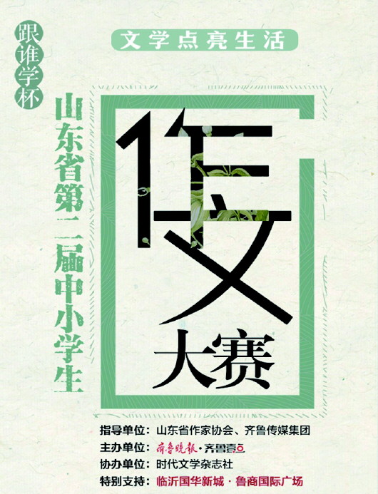 山东省第二届中小学生作文大赛由“跟谁学”冠名,临沂国华新城·鲁商国际广场提供特别支持。“跟谁学”是中国在美国上市的K12在线教育机构,主要业务为K12在线课外辅导培训以及成人在线课程培训,曾荣获“福布斯2015中国成长最快科技公司”称号。2019年成功登陆美国纽约证券交易所。旗下有跟谁学、高途课堂、成蹊商学院、金囿学堂、微师等产品。