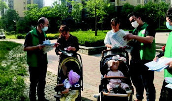 聊城市卫生健康委的志愿者走进小区开展宣传服务活动。
