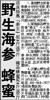 2、深海极品野生即食“参王”:个大刺好,8年壮年参,纯天然、肉厚、口感佳,市场价550元/斤,现买2斤送2斤,4斤1100元。本周特惠“买4斤送5斤”,9斤只需1996元。