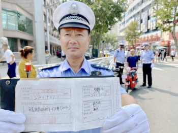 号牌“睡”挎包里 车主领首张罚单