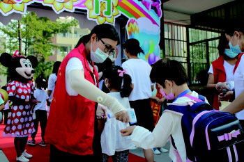 由于疫情缘故,重庆路小学的全体老师为了能够让孩子们顺利返校,提前做好了疫情防护准备,清洁消毒、卫生扫除,连校门口也安排了专值人员“严防死守”。此外,学校还要求实施错时入校和分流入门,人与人之间保持一米的距离,学生须按照指定路线进入校园,通过种种措施,将孩子们的安全风险降至最低。