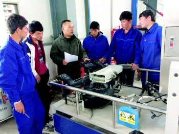 为了让更多的维族学生更好的学习汽车专业知识,他采用“手舞足蹈式”的教学方式,同时放慢语速,让班里汉语好的同学来当翻译,充分利用学校现有的班班通多媒体设备,自己多年积累的课件、图片、动画和视频等教学资源,还有把能带进教室的汽车零件拿到学生面前,现场拆解、检测和复装,通过多种方式,充分调动学生学习积极性。课堂活跃了,可是这样每次课上下来,蔡军累的瘫坐在教室一旁的椅子上,一动不想动。