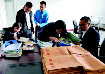 蔡军(右一)为学校完善相关制度规定。
