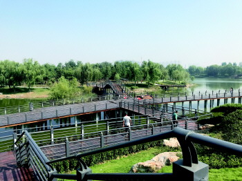 “这条贯通东西的栈道修建好后,将从根本上解决人车分离的问题。”曹君向记者介绍说,目前,市民公园的东西侧均已修建完成,为完善该区域的游步道系统,实现人车分离,他们通过修建栈道成功的将东、西侧公园连通为一体。他表示,目前贯通栈道已全部完工,具备通行条件,观景平台及景观桥也已建设完成,很多市民已经按耐不住心中的喜悦前来游览了。