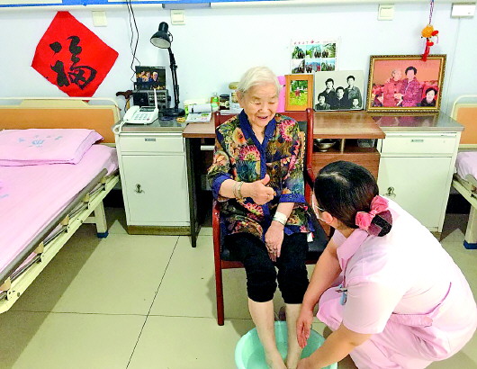 每天给科室老人们做口腔护理、定时翻身、更换纸尿裤、擦身、洗漱、喂饭、加餐等一些日常生活照料,吕玉梅都精心细致,从不倦怠。