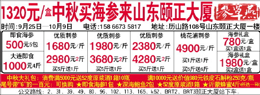 1320元/盒中秋买海参来山东颐正大厦