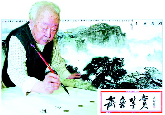 2008年1月8日,笔会在山东新闻大厦举行,本报有幸请到刘宝纯、徐金堤、丁宁原、郭志光、张登堂、吴泽浩、孔维克七位书画大家,合作了一幅八尺整张的国画佳作《锦绣齐鲁》,这幅作品画面厚重练达亦清新灵秀,体现出齐鲁山水的气派。画作完成后,本报记者再一次来到魏老的家。