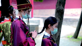 秋高气爽时节,圣城曲阜晴空万里。9月24日下午3点半左右,万仞宫墙前,在悠扬的雅乐声中,256名大学生整齐站列,齐声合唱《大爱仁德》。这是今年庚子年祭孔大典的新增环节,也是一亮点。