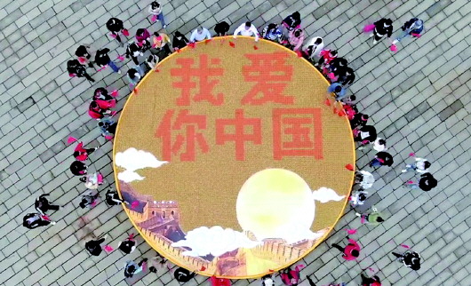 景区用万枚月饼拼出“我爱你中国”