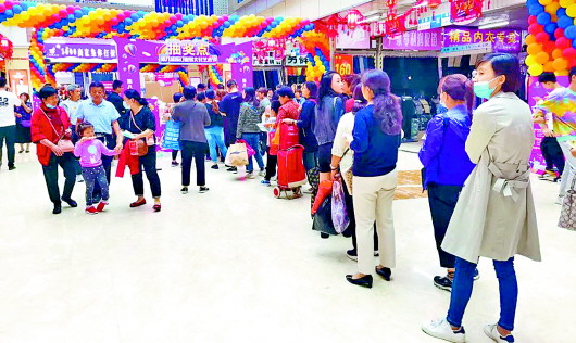 购物后参与抽奖的市民排起了长队。