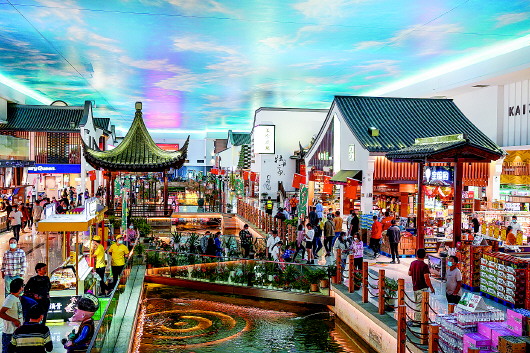 这是10月8日拍摄的沪宁高速公路苏州段的阳澄湖服务区。位于沪宁高速公路苏州段的阳澄湖服务区于2019年5月完成升级改造,通过大型水景等元素还原“诗画江南”意境,成为当地的“新景点”。 新华