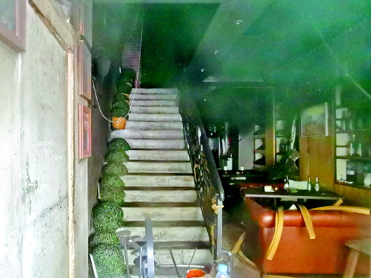 过火后的酒吧。