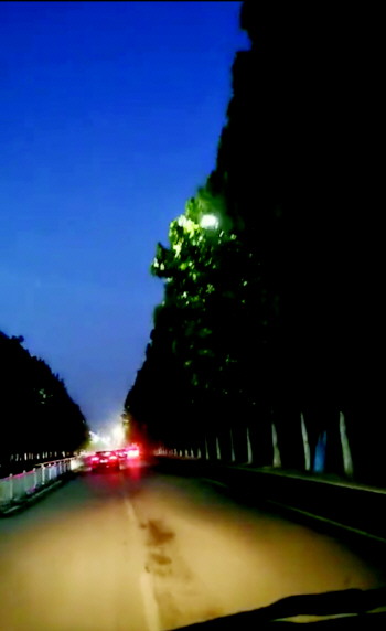茌平多条道路的路灯都藏在树里面。