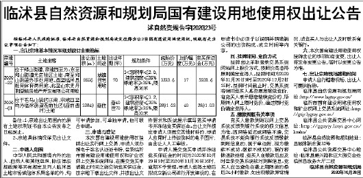 临沭县自然资源和规划局国有建设用地使用权出让公告