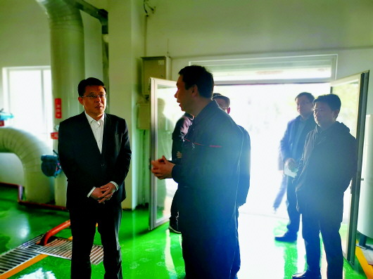 县委书记翟军(左一)了解恒泰供暖情况。
