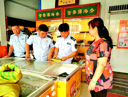商河县市场监督管理局工作人员日常检查。