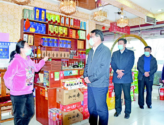 商河县县委书记翟军与食品经营者交谈。(资料片)